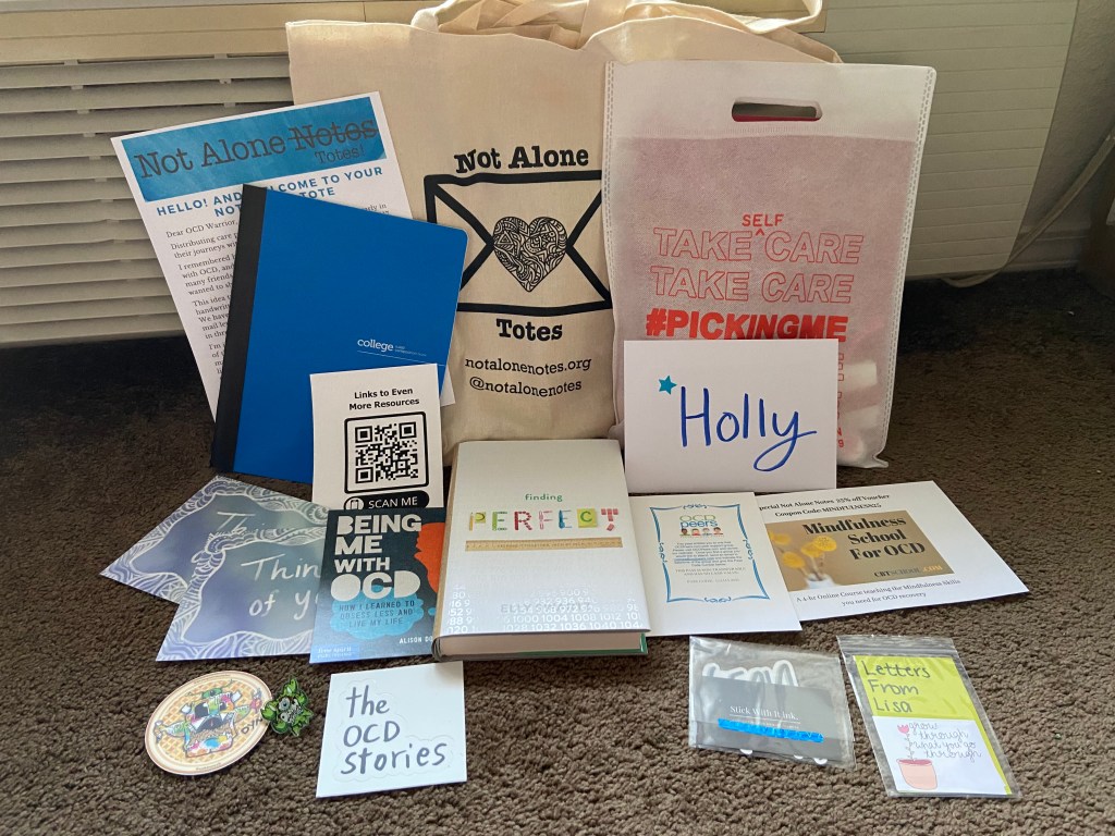 Not Alone Totes are care packages full of resources mailed to folks new to their journeys with OCD, whether professionally or self-diagnosed. They are for any age, and we are open to different lived experiences!